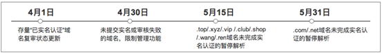 1、截止2017年5月15日,未完成實名認證的.top/.xyz/.vip /.club/.shop/.wang/.ren域名將被注冊局暫停解析;