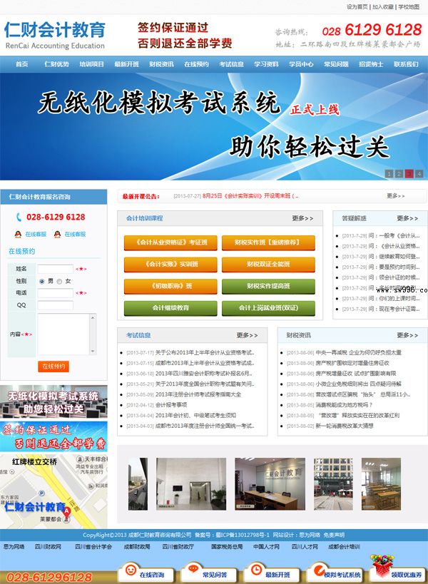 企業全真賬成都會計培訓學校,成都仁財專業會計培訓學校。成都仁財會計教育開發的“無紙化模擬考試系統”,上千道模擬會計考試題,考點100%涵蓋,完全模擬真實無紙化會計考試環境,助您輕松地通過會計考試。