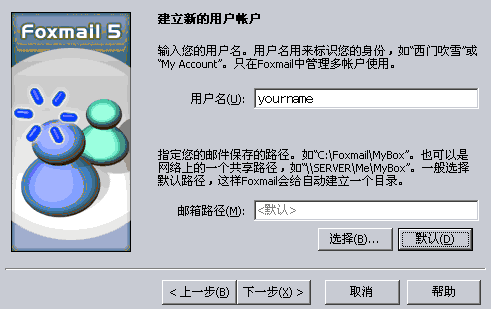 1. 點擊“帳戶”菜單中的“新建”,進入 Foxmail 用戶向導。