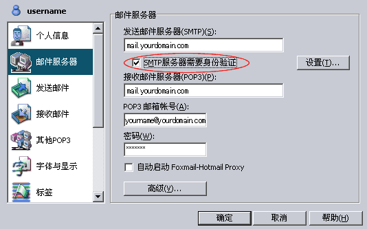 9. “驗證”選擇“使用與 POP3 服務器相同的信息”,點擊“確定”返回。