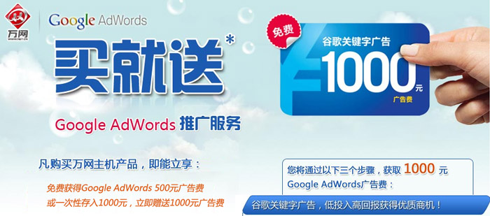 購萬網(wǎng)主機贈送google廣告費用--“Google AdWords買就送”活動參與指南,詳情點擊:http://www.sw996.com/faq/zhuji/20110905122222.html
