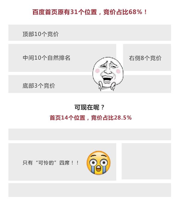 距上次百度刷屏后,昨天互聯網廣告圈里又出現百度競價的新聞,首頁競價位置縮減到4個,然后就是各種營銷公司更加瘋狂的推動百度產品,邏輯很吊詭,這更是奇缺資源了,物以稀為貴嘛。